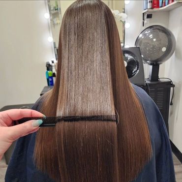 Say goodbye to frizz and hello to smooth, shiny hair with our keratin smoothing treatment. This treatment helps to smooth and straighten your hair, leaving it more manageable and easier to style. Enjoy silky, soft hair that lasts for months.